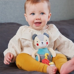 Zintegrowany drewniany gryzak pomaga masować dziąsła i koi maluszka. Łatwy do chwytania nawet dla najmniejszych rączek.