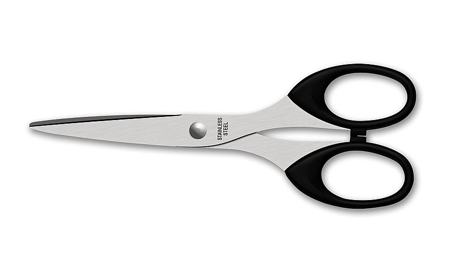 Niezawodne nożyczki biurowe ze stalowymi ostrzami zapewniają precyzyjne i gładkie cięcie podczas pracy w biurze, domu i w szkole. Dzięki czarnej kolorystyce wyglądają nowocześnie i pasują do każdego biurka.