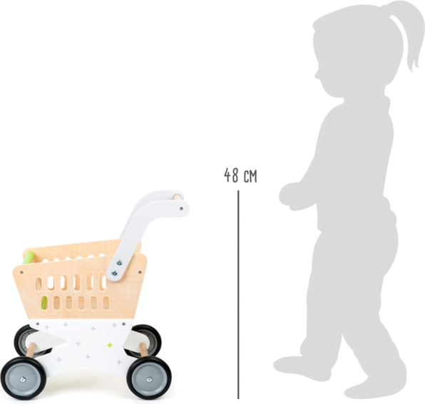 Podaruj dzieciom autentyczne wrażenia z robienia zakupów. Dziecięcy drewniany wózek zakupowy SMALL FOOT Trend łączy elegancki design, stabilność i bezpieczne użytkowanie dzięki gumowym kółkom, które zapewniają cichą i kulturalną jazdę na różnych nawierzchniach. Pojemny koszyk z łatwością pomieści zabawki, pluszaki i akcesoria do dziecięcego sklepiku.