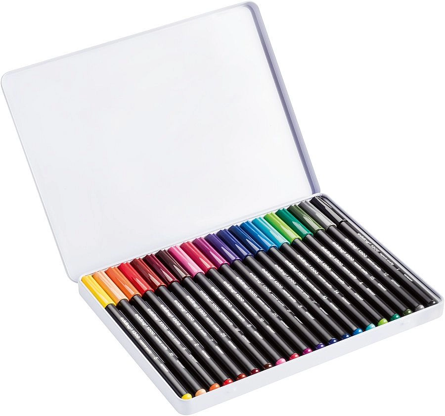 Zestaw upominkowy flamastrów edding 1300 oferuje 20 intensywnych kolorów z atramentem na bazie wody do pisania, rysowania i kolorowania na jasnym papierze. Wyraźna, nieprześwitująca linia, wygodny okrągły grot 2 mm oraz stylowe metalowe opakowanie sprawiają, że ten zestaw to świetny prezent i praktyczna pomoc do szkoły, biura i kreatywnych projektów. Wyprodukowano w Niemczech.