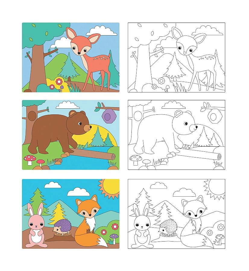Odkryj kreatywną zabawę z zestawem malarskim CONCORDE z motywami leśnych zwierzątek. Zestaw zawiera 3 zawieszane płótna 12,7 × 17,8 cm, 6 kubeczków z farbą oraz pędzelek – idealny dla dzieci i początkujących malarzy. Maluj według wzoru lub uruchom wyobraźnię i stwórz oryginalne obrazki pełne kolorów. Tworzenie przynosi radość, relaks i rozwija zdolności twórcze.