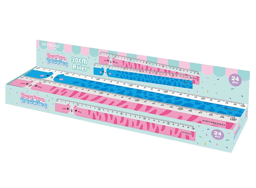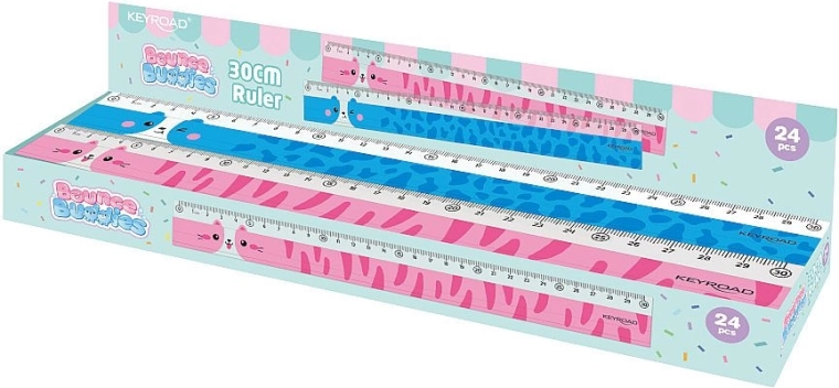 Stylowa szkolna linijka o długości 30 cm z motywami zwierzątek ucieszy dzieci i studentów. Wykonana z przezroczystego plastiku, ma precyzyjną podziałkę do 30 cm i dzięki kompaktowym wymiarom łatwo mieści się w piórniku. Dobrze przylega do papieru, więc rysowanie jest wygodne i dokładne. Dostarczana w asortymencie wzorów w kolorze różowym lub niebieskim.