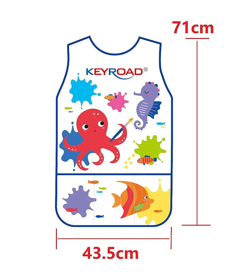 Praktyczny dziecięcy fartuszek do malowania i prac plastycznych bez rękawów od KEYROAD chroni ubranie przed zabrudzeniami dzięki wodoodpornej, łatwej do czyszczenia powierzchni. Oferuje trzy pojemne kieszenie na pędzle i kredki, wygodny krój oraz wesoły, podwodny design dla młodszych uczniów.