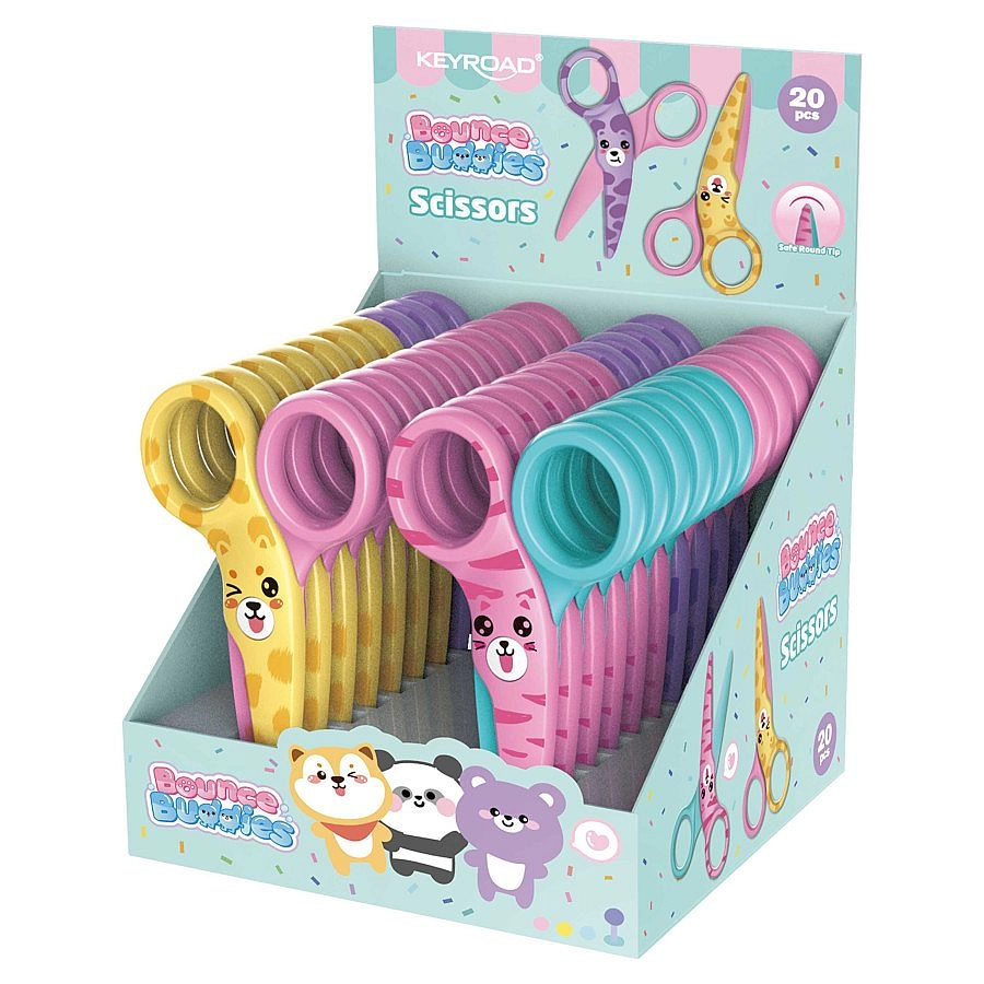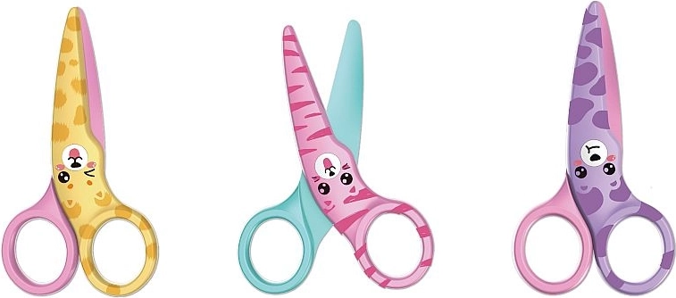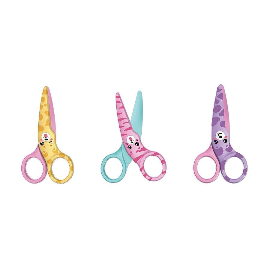Wesołe dziecięce nożyczki bezpieczeństwa z motywami zwierzątek o długości 10,5 cm są idealne do pierwszych kreatywnych prac. Mają nie metalowe ostrze, zaokrągloną końcówkę oraz ergonomiczny plastikowy uchwyt dla wygodnego i bezpiecznego cięcia nawet dla najmłodszych dzieci. Dostępne w mieszance kolorów.