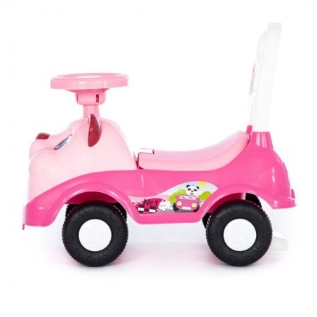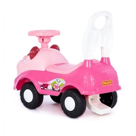 Jeździk można łatwo wykorzystać także jako pchacz – dziecko trzyma się tylnego uchwytu i pcha pojazd przed sobą. To w naturalny sposób wspiera rozwój fizyczny, równowagę i koordynację. Zabawa podczas jazdy jest uzupełniona o moduł dźwiękowy na kierownicy, który motywuje do dalszego odkrywania.