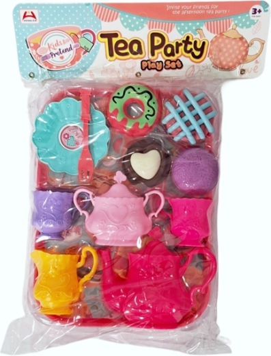 W skład wchodzi serwis do herbaty z akcesoriami i drobnymi „produktami spożywczymi”, dzięki czemu zabawa jest jeszcze bardziej realistyczna. Zestaw zapakowany jest w przezroczysty woreczek, co ułatwia przechowywanie i zabranie go w podróż. Podane wymiary dotyczą opakowania.