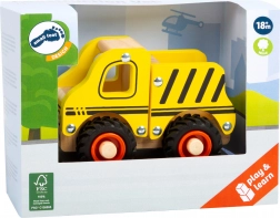 Ten kompaktowy pojazd budowlany z certyfikowanego drewna FSC zachwyci każdego małego budowniczego. Dzięki gumowanym kołom porusza się cicho i pewnie po różnych nawierzchniach, a przy tym jest bezpieczny do pokoju dziecięcego. Naturalne połączenie drewna i intensywnego żółtego koloru zachęca do odkrywczej zabawy i rozwoju umiejętności.