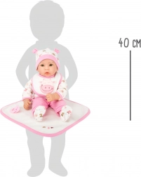 W zestawie znajduje się ubranko dla lalki, smoczek i kocyk w delikatnie dobranych kolorach. Ubranka łatwo się zakłada i zdejmuje, dzięki czemu dzieci trenują małą motorykę podczas codziennej opieki nad swoją lalką.