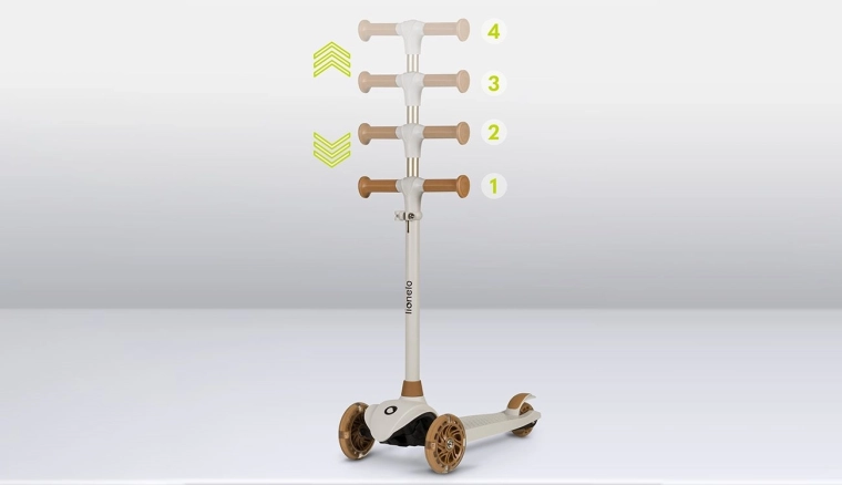 4-stopniowa regulacja wysokości kierownicy (ok. 65/70/75/80 cm) oraz tylny hamulec nożny zapewniają pewne zatrzymanie i komfortową, bezpieczną jazdę.