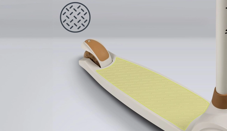 Dwa przednie koła i szeroki podest zapewniają świetną stabilność, ułatwiają naukę i zwiększają pewność jazdy nawet dla całkowitych początkujących.