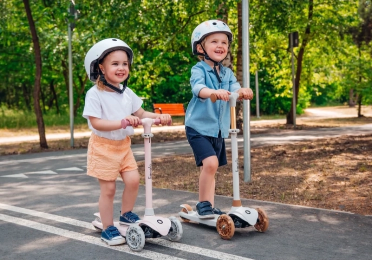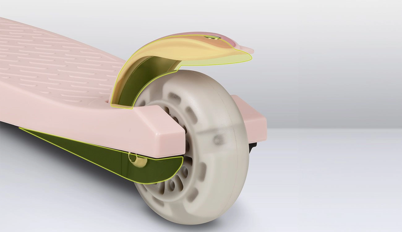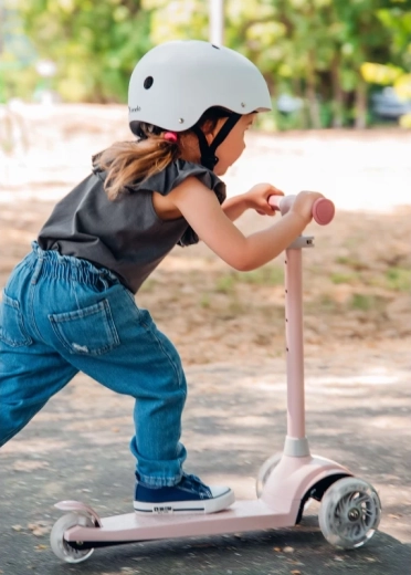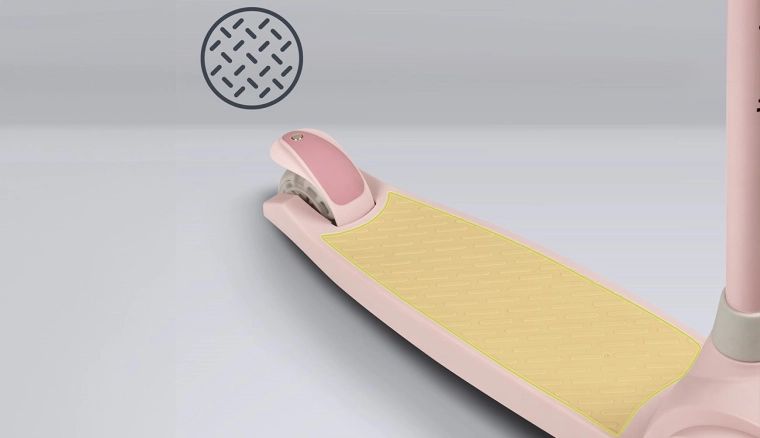 Dwa przednie koła oraz niski, antypoślizgowy podest zapewniają małym użytkownikom pewność i wspierają prawidłową równowagę już od pierwszych przejazdów.