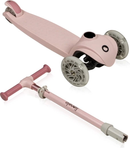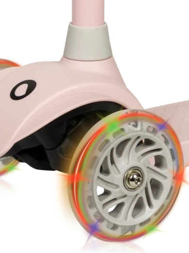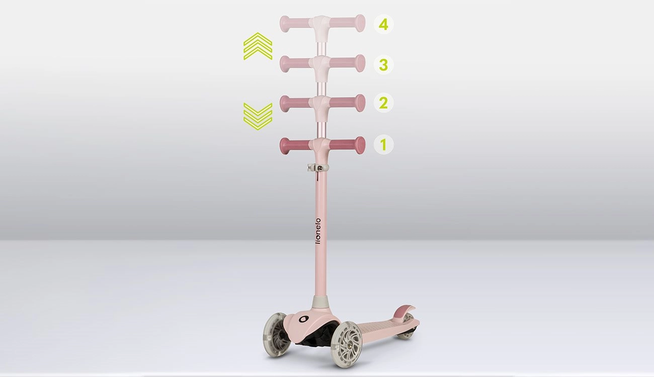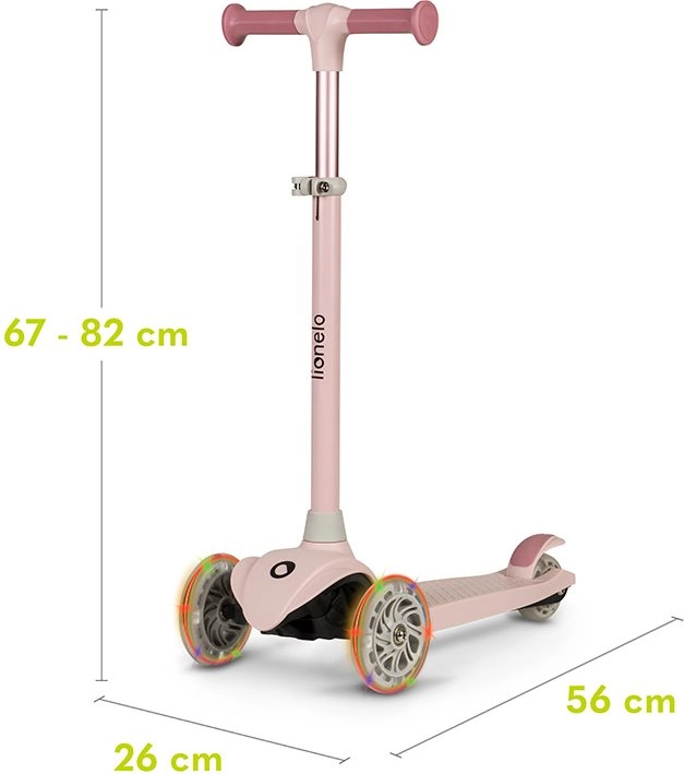 Lekka i stabilna dziecięca trójkołowa hulajnoga LIONELO Jessy Pink Rose wspiera równowagę i motorykę dzieci. Oferuje 4-stopniową regulację wysokości kierownicy, antypoślizgowy podest, tylny hamulec nożny oraz świecące koła LED z łożyskami ABEC-7 dla płynnej jazdy. Maksymalna nośność 50 kg i ograniczenie kąta skrętu do 65° dla bezpieczniejszego manewrowania.