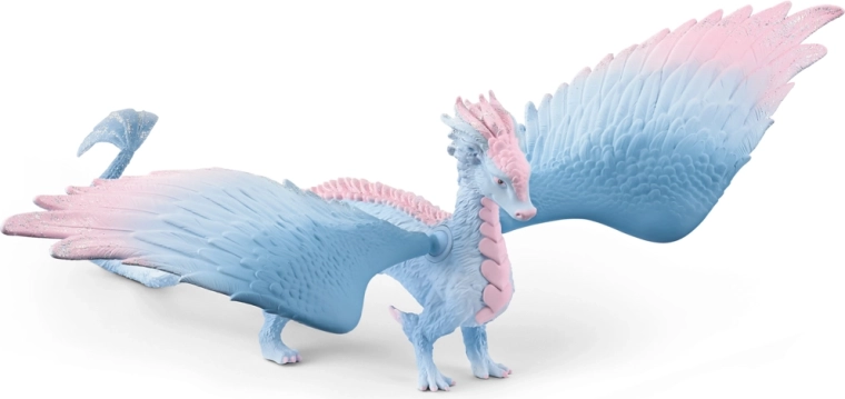 Wejdź do magicznego świata BAYALA z kryształowym smokiem, który zachwyca eleganckim wyglądem i lśniącymi detalami. Jego niebieskie skrzydła z różowym odcieniem, długie, smukłe ciało oraz różowe łuski na piersi prezentują się naprawdę majestatycznie. Figurka jest idealna dla fanów smoków i magicznych historii.