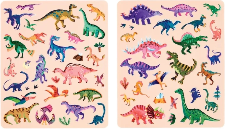 Twórz wciąż nowe sceny z dinozaurami – naklejki mocno trzymają i można je bez trudu przenosić z miejsca na miejsce.