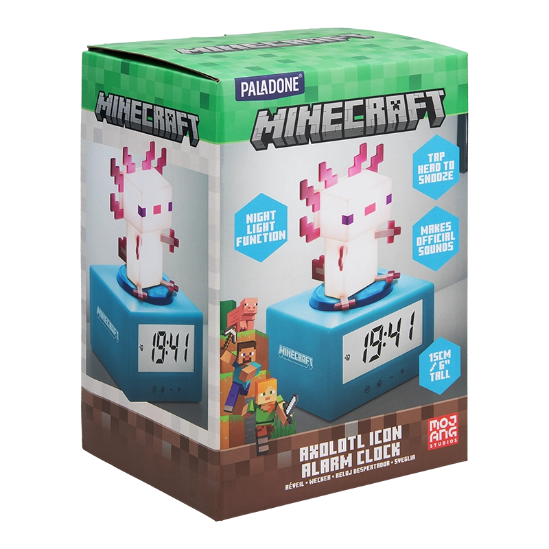 Obudź się do nowego dnia z ulubionym stworzeniem ze świata MINECRAFT. Budzik Axolotl w ikonicznym pikselowym stylu zachwyca jasnoróżowym wykończeniem z kontrastowymi detalami i stanie się wyrazistym dodatkiem do pokoju dziecięcego oraz kolekcji każdego fana.