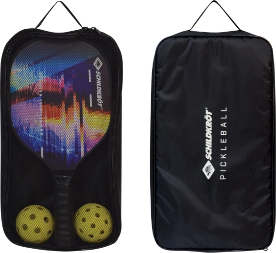 Zestaw SCHILDKRÖT do pickleballa łączy wszystko, czego potrzebujesz, aby zacząć grać od razu. Pickleball łączy elementy tenisa, tenisa stołowego i badmintona, a dzięki perforowanym piłkom ma niższą prędkość, co ułatwia kontrolę uderzeń i dłuższe wymiany. Zagrasz w ogrodzie, w parku i na sali gimnastycznej – nawet bez siatki.