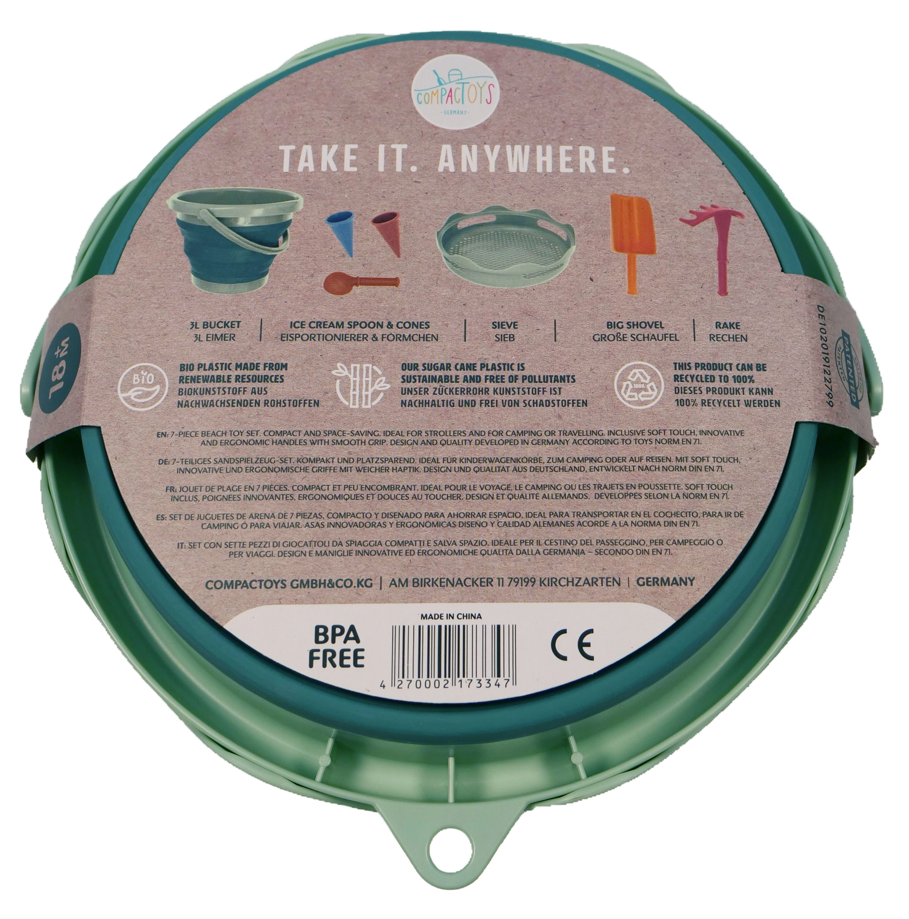 Materiały są bezpieczne biologicznie i przyjazne dla środowiska, a opatentowany design zapewnia wytrzymałość i długą żywotność. Zestaw to świetny towarzysz na plażę, do kempingu i na piaskownicę – wszędzie tam, gdzie buduje się zamki i tworzy babki z piasku.