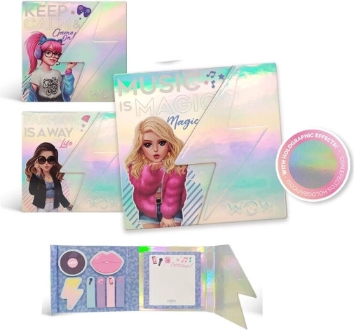 Stylowy holograficzny notatnik z samoprzylepnymi karteczkami i magnetycznym zamknięciem do szybkich notatek w domu, w szkole i w biurze. Zawiera notes oraz zestaw naklejek w różnych kształtach, nowoczesny i elegancki design oraz trzy motywy postaci ANNIE, EMMA i VALENTINA. Model wysyłany jest losowo.