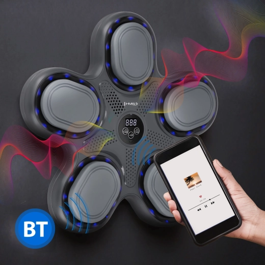 Przyspiesz swoje refleksy i uatrakcyjnij trening dzięki elektronicznej tarczy bokserskiej HMS TB11. Unikalny, gwiazdowy design z podświetleniem LED, łącznością Bluetooth i wbudowanym głośnikiem łączy trening kondycyjny z muzyką. Pięć aktywnych stref podświetlanych LED zachęca do szybkiej reakcji, precyzyjnych trafień i poprawy koordynacji ręka–oko. W zestawie znajdziesz także rękawice MMA dla wygodnego i bezpiecznego treningu.