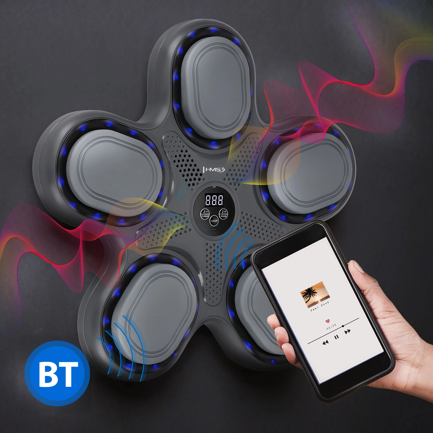 HMS TB11 to nowoczesna tarcza treningowa do użytku domowego, która łączy skuteczny rozwój szybkości i precyzji z atrakcyjnym wyglądem. Pięć podświetlanych pól uderzeniowych zapala się losowo i prowadzi przez dynamiczny trening – obserwuj liczbę udanych trafień na czytelnym wyświetlaczu i przesuwaj swoje granice z każdą kolejną serią.