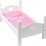 Drewniane łóżeczko dla lalek z białymi serduszkami