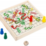 Gra planszowa „Węże i drabiny” oferuje zabawę dla całej rodziny. Celem gry jest dotarcie od 1 do 100 i zaskoczenie swoich przeciwników. Jeśli staniesz na polu z wężem, droga się wydłuży, podczas gdy drabina przybliży cię do mety. Gra jest kompaktowa, a wszystkie elementy są bezpiecznie przechowywane we własnym pudełku, które jednocześnie pełni rolę planszy.