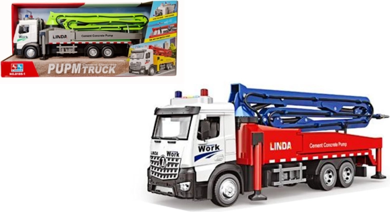 Odkryj realistyczny model ciężarówki z pompą do betonu, który dostarcza mnóstwo zabawy i pobudza wyobraźnię podczas zabawy na placu budowy. Długie ramię pompy ma do 82 cm, płynnie obraca się o 180° i pozwala dzieciom symulować prawdziwe pompowanie betonu. Detale, takie jak otwierane drzwi kabiny i regulowane podpory, dodają zabawie autentyczności.