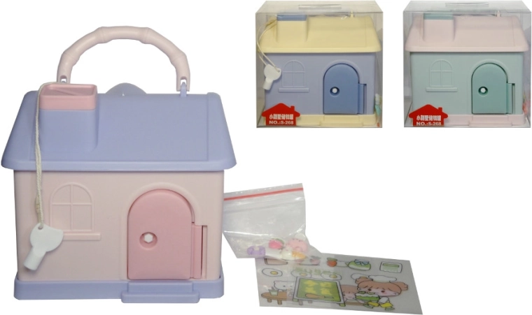 Urocza skarbonka w kształcie domku pomoże dzieciom odkładać pierwsze oszczędności i wyrobić nawyk oszczędzania. Ma zamknięcie na kluczyk dla bezpieczeństwa monet, dekoracyjny uchwyt do łatwego przenoszenia i jest dostarczana w żywych kolorach wybieranych losowo. Odpowiednia dla dzieci od 3 lat.