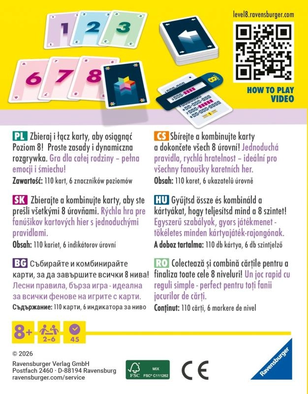Level 8 to dynamiczna rodzinna gra karciana, w której stopniowo realizujesz zestawy zadań i starasz się przejść przez wszystkie osiem poziomów szybciej niż przeciwnicy. Dzięki przejrzystym mechanikom i krótkiemu czasowi rozgrywki będziesz chętnie do niej wracać raz po raz.