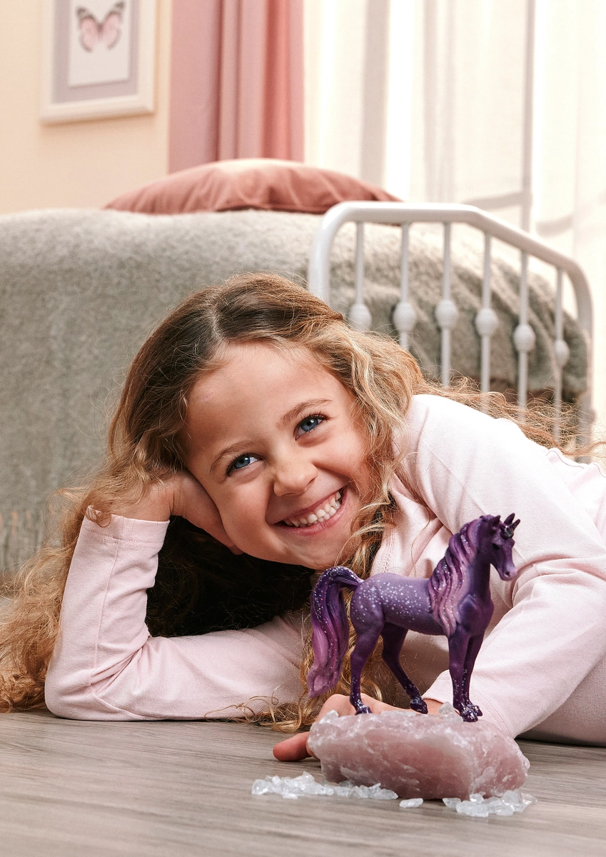 Klacz tęczowego jednorożca Galaktyka z magicznego świata Schleich BAYALA zachwyca subtelnym wyglądem, błyszczącymi efektami oraz dopracowaną grzywą i ogonem. Dzieci pokochają jej łagodne spojrzenie i zgrabną sylwetkę, które inspirują do nieskończonych opowieści ze świata fantazji.