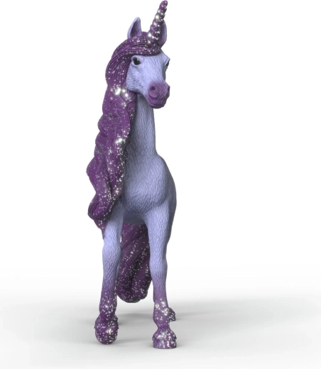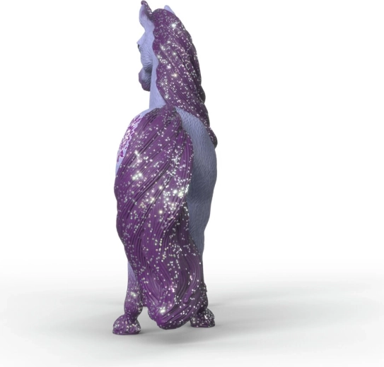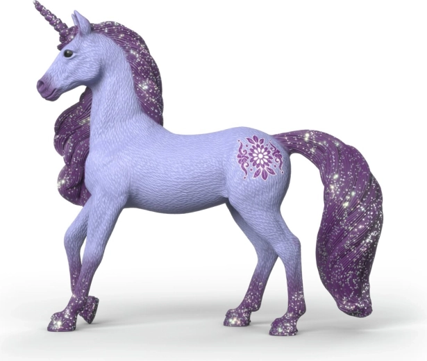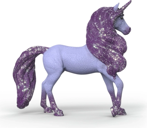 Liliowe ciało oraz błyszcząca grzywa, ogon i róg nadają figurce wyjątkowy, baśniowy charakter, który zachwyca podczas zabawy i na wystawce.