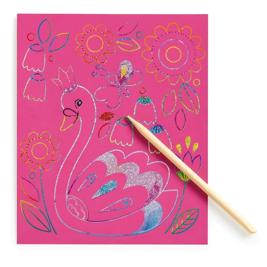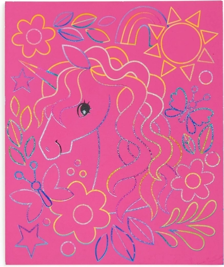 Ten uroczy zestaw przynosi dzieciom radość odkrywania – wystarczy delikatnie zeskrobać powierzchnię, a pod palcami pojawią się żywe, lśniące kolory i magiczne motywy jednorożców. Zestaw świetnie sprawdzi się podczas tworzenia w domu i w podróży, pozwalając dzieciom tworzyć oryginalne obrazki, naklejki i kartki.