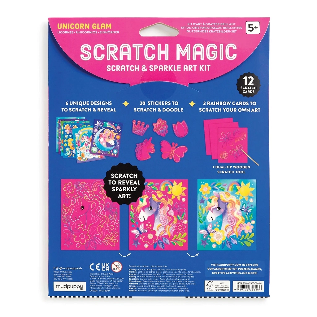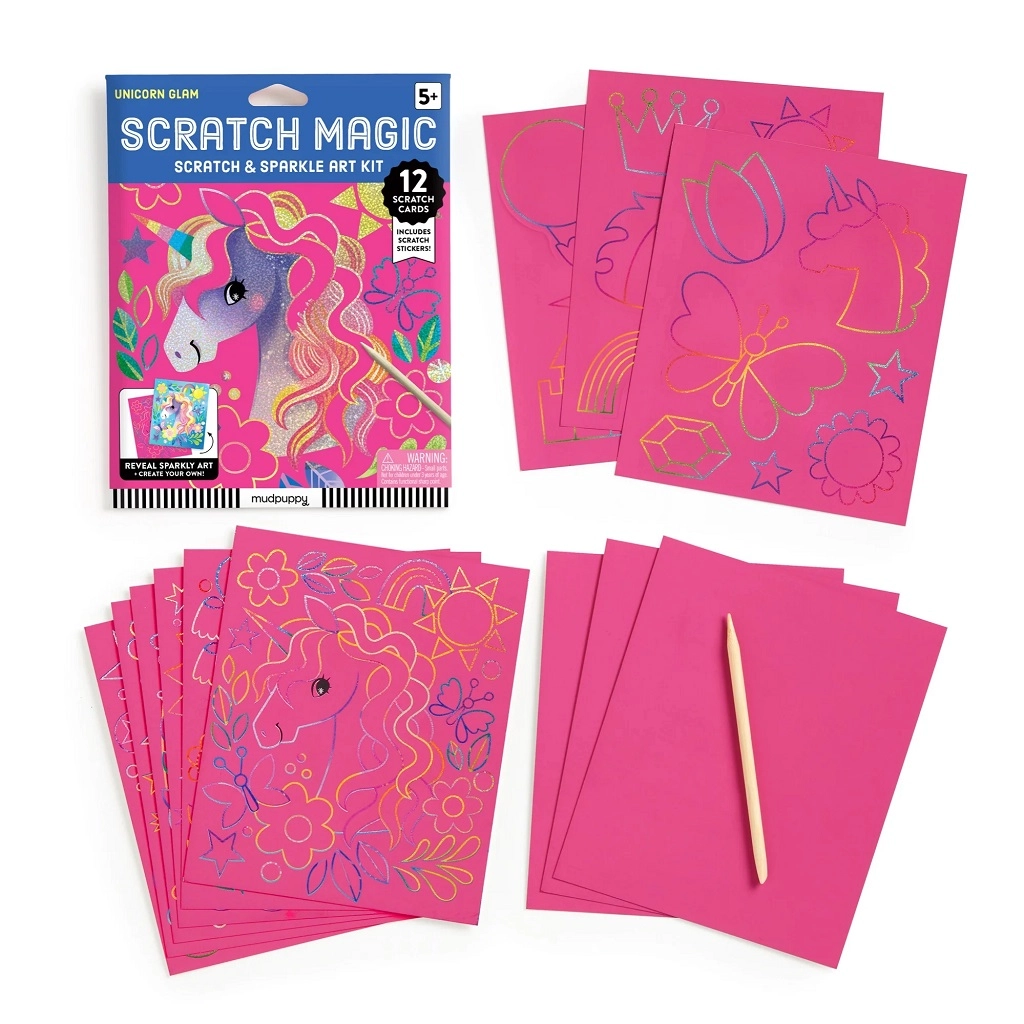 Odkryj magię tęczowych kolorów z kreatywnym zestawem do wydrapywania MUDPUPPY. Dzieci zetrą wierzchnią warstwę i odsłonią błyszczące motywy jednorożców, stworzą własne obrazki, naklejki oraz kartki z życzeniami. Idealny na deszczowe dni, w podróż i na przyjęcia – bez bałaganu, za to pełen wyobraźni, kreatywności i rozwoju małej motoryki.