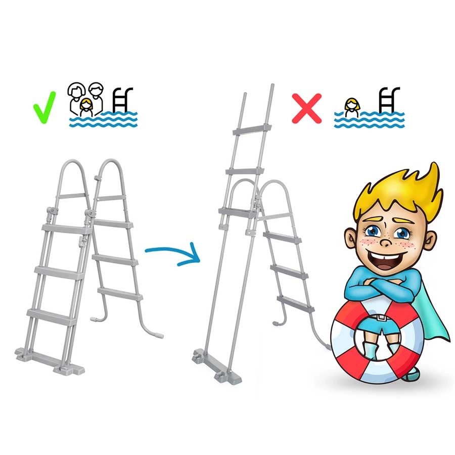 - Bezpieczne wejście – drabinka z możliwością podniesienia/wyjęcia zewnętrznych stopni.