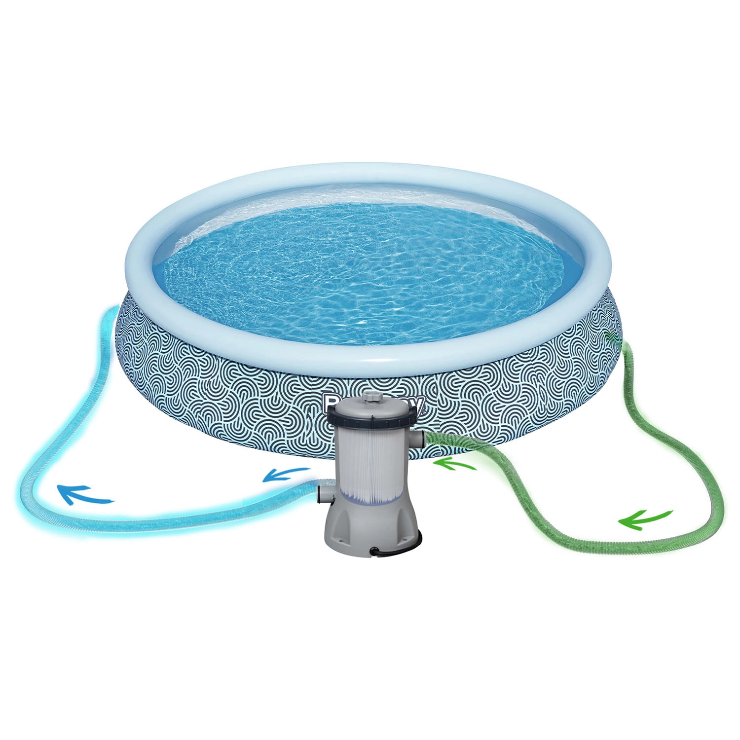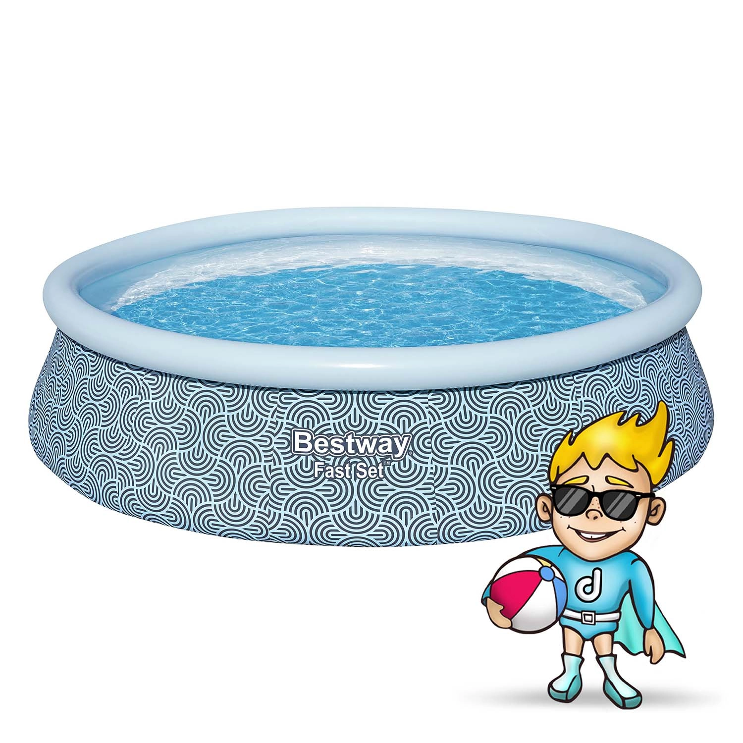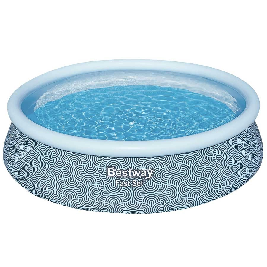 Rodzinny basen BESTWAY Fast Set o średnicy 457 cm i wysokości 107 cm oferuje dużo miejsca do pływania, zabawy i relaksu dla całej rodziny. Samonośna konstrukcja formuje się podczas napełniania, więc montaż bez narzędzi zajmuje chwilę. Stylowy rattanowy wzór świetnie wpasuje się w każdy ogród.