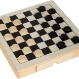 Ten elegancki drewniany zestaw oferuje trzy klasyczne gry strategiczne w jednym: szachy, warcaby i młynek. Dzięki kompaktowym wymiarom 28 × 28 × 4 cm oraz zintegrowanym szufladkom jest idealny w podróży i w domu. Każdy element ma swoje miejsce, więc nic się nie zgubi, a rozgrywkę można rozpocząć w kilka sekund.