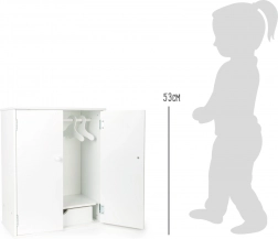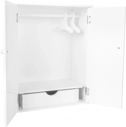 Ta biała szafa dla lalek jest idealna do utrzymania porządku w garderobie Twoich ulubionych lalek. Praktyczny design umożliwia łatwe wieszanie ubrań i organizację małych przedmiotów, co jest idealne do dziecięcych zabaw.