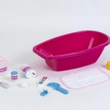 Odkryj zabawę z dużą wanienką dla lalek, która jest dostarczana w komplecie z akcesoriami, obejmującymi wszystko potrzebne do naśladowania opieki nad maleństwem. Zestaw jest perfekcyjny do rozwijania dziecięcej wyobraźni podczas zabawy.