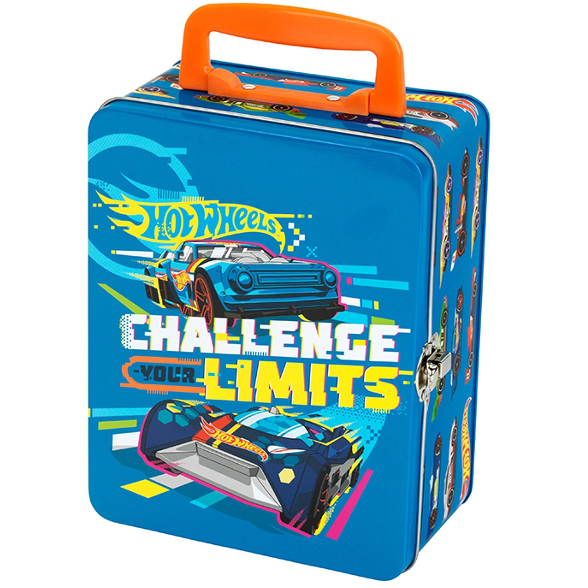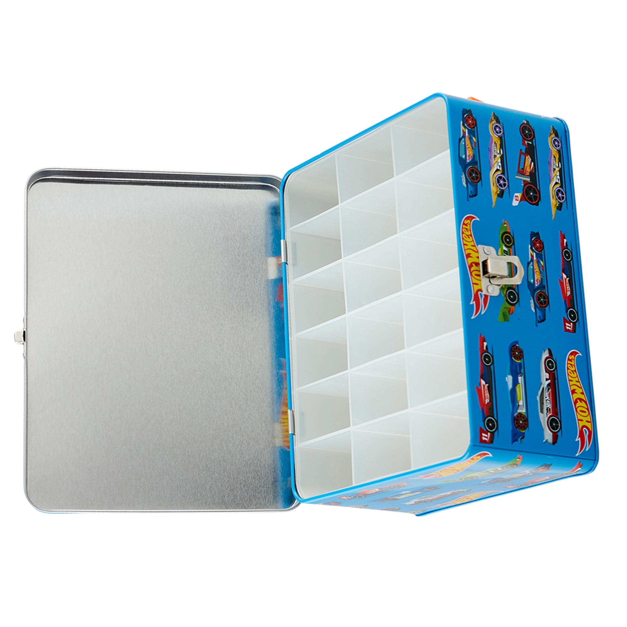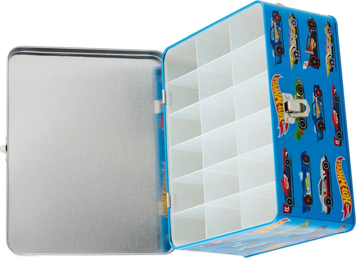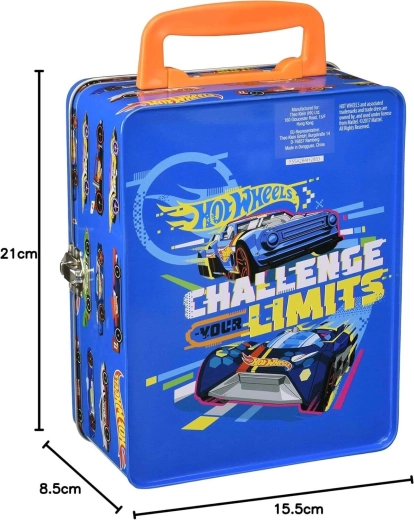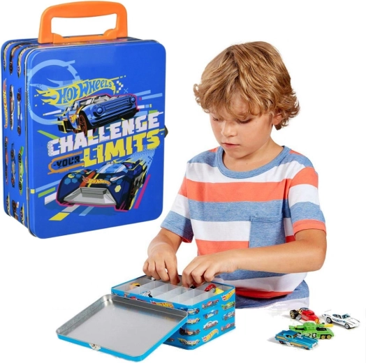 Ta stylowa niebieska walizka z grafiką samochodów wyścigowych i hasłem „Challenge Your Limits” to świetne rozwiązanie dla wszystkich małych kolekcjonerów. W środku znajduje się wyjmowana kratka z 18 oddzielnymi przegródkami, które utrzymują autka przejrzyście uporządkowane i chronione. Solidna metalowa konstrukcja oraz niezawodne zapięcie klamrowe zapewniają bezpieczne przechowywanie podczas przenoszenia.