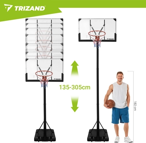Ciesz się treningiem i grą gdziekolwiek z przenośnym koszem do koszykówki TRIZAND. Dzięki płynnej regulacji wysokości 135–305 cm, stabilnej konstrukcji i mobilnej podstawie z kółkami łatwo dopasujesz kosz dla dzieci i dorosłych. Duża tablica i standardowa obręcz 45 cm zapewniają realistyczne wrażenia z gry w domu, w ogrodzie i na podjeździe.