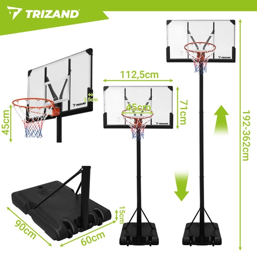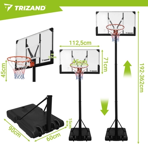 Kosz do koszykówki TRIZAND to kompletny zestaw treningowy do rekreacyjnej gry i codziennych ćwiczeń. Regulowana wysokość 135–305 cm rośnie wraz z zawodnikiem i umożliwia właściwe ustawienie dla małych początkujących i dorosłych. Solidna stalowa konstrukcja oraz podstawa z możliwością dociążenia wodą lub piaskiem zapewniają bezpieczną stabilność podczas rzutów i zbiórek.