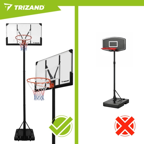 Przezroczysta tablica z osłonami narożników oraz stalowa obręcz 45 cm z siatką zapewniają realistyczne warunki i trwałość do gry na zewnątrz.