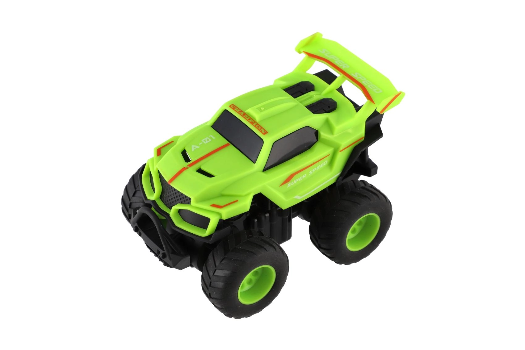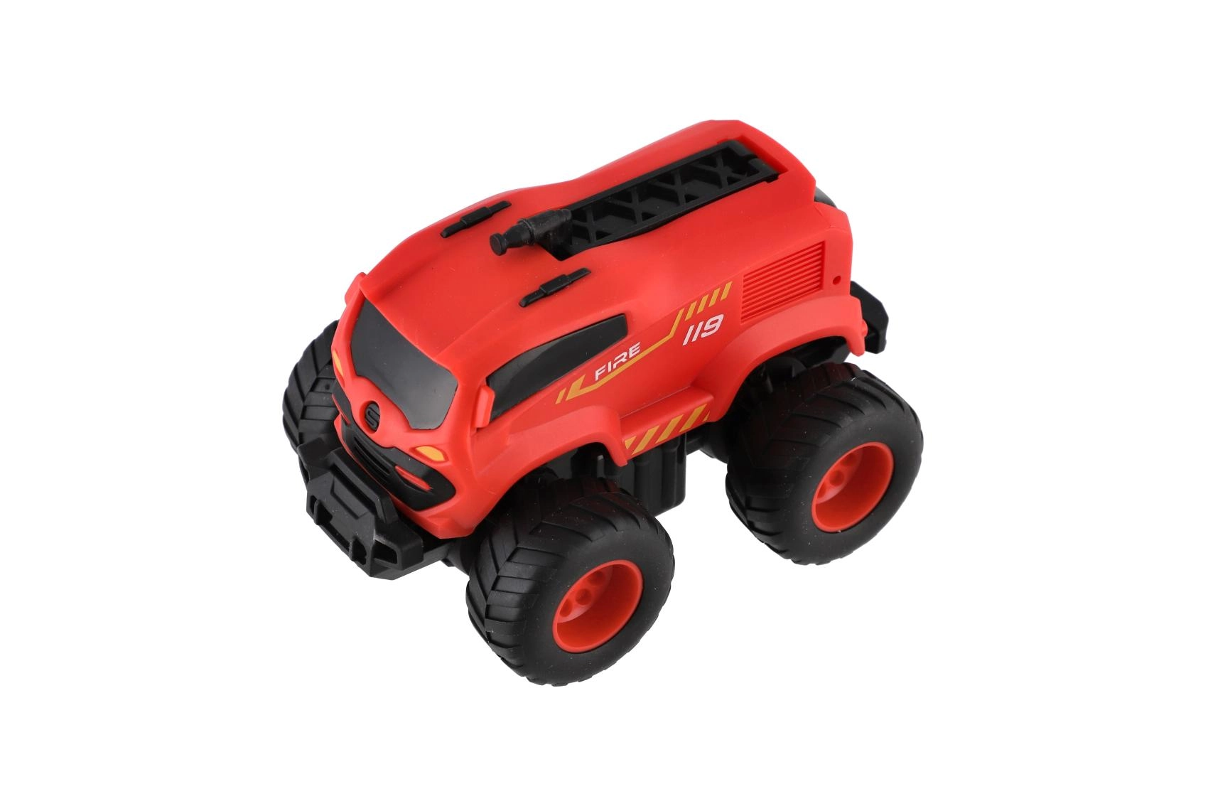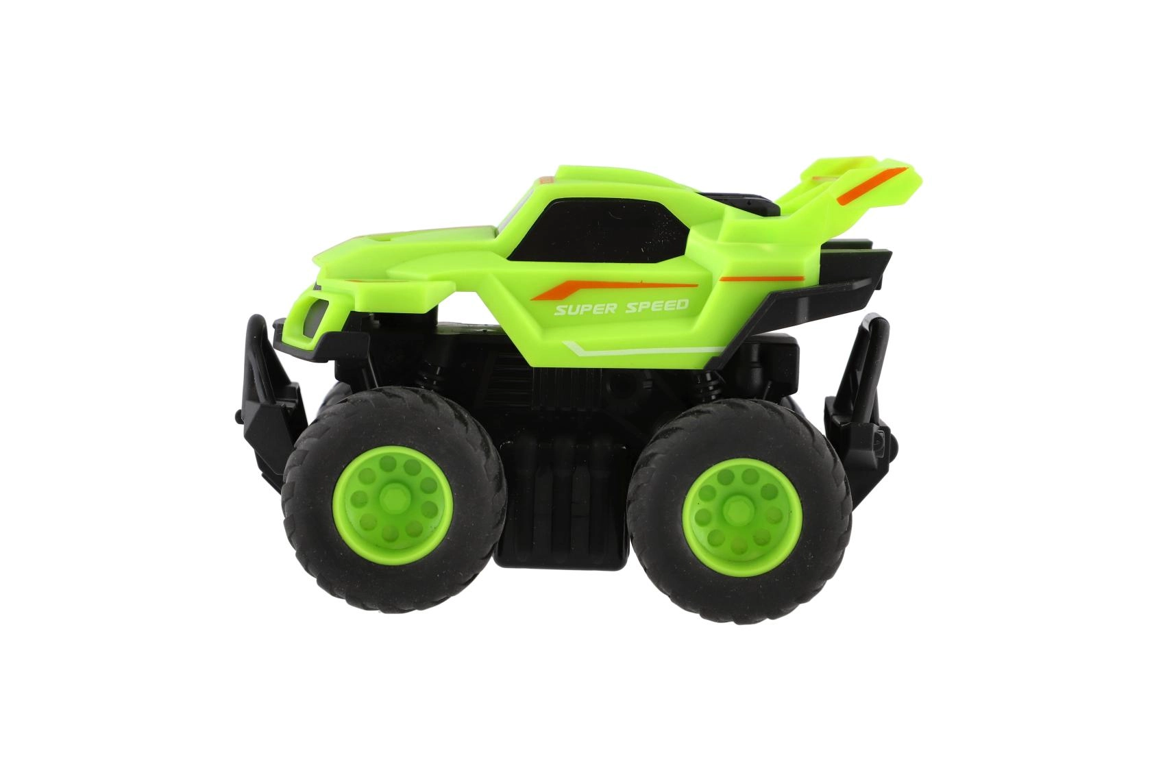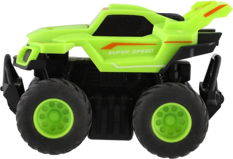 Rozpędź, puść i patrz, jak monster trucki pędzą do przodu. Idealne do wyścigów na podłodze, dywanie i torach z przeszkodami w pokoju.