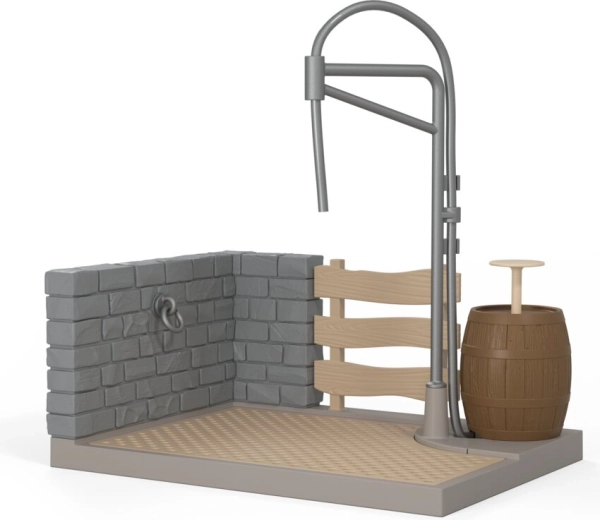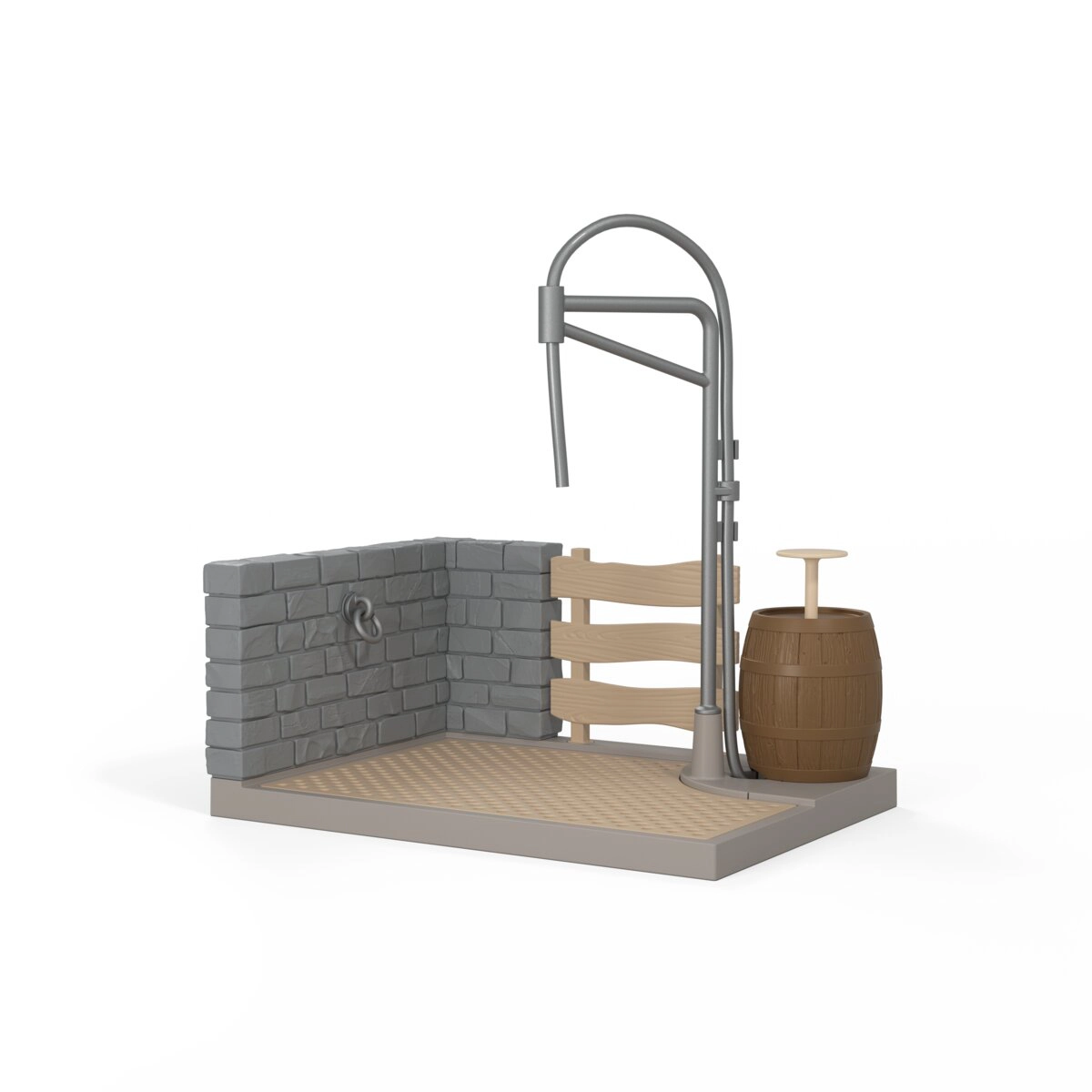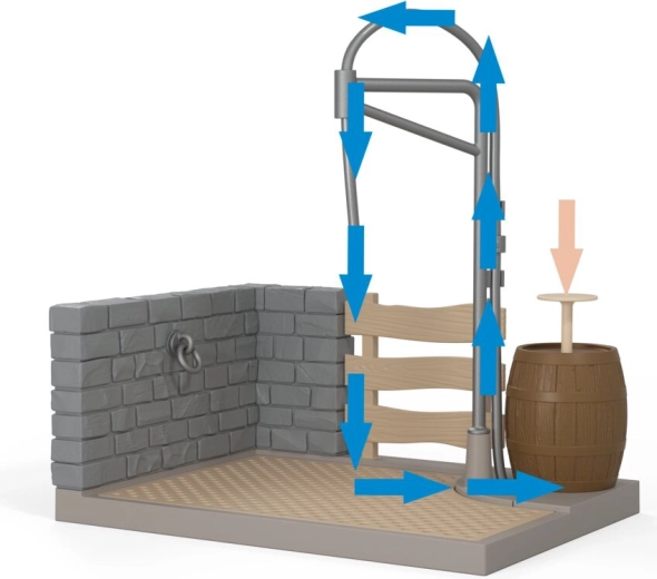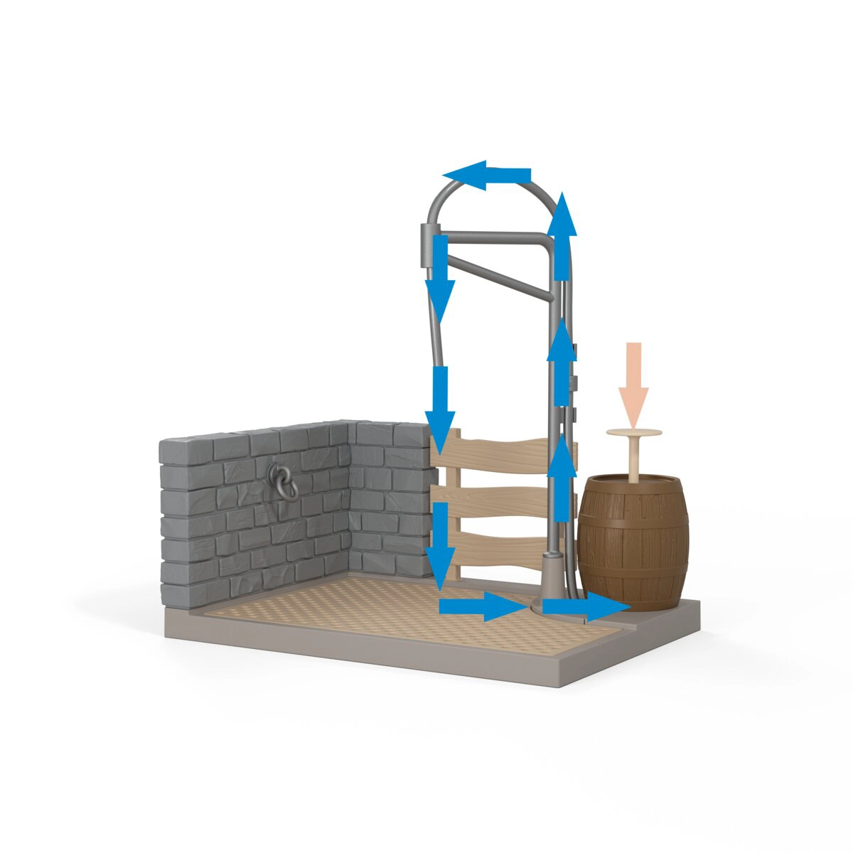 Dzieci mogą za pomocą dźwigni na beczce uruchomić wodę i naprawdę „opuścić prysznic” na konia. Realistyczny efekt wspiera kreatywną zabawę i opiekę nad zwierzętami.