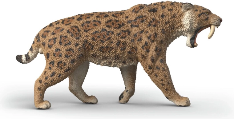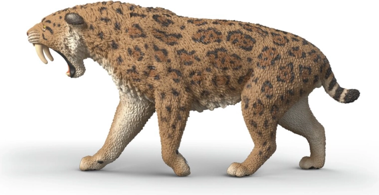 - Realistyczne detale: teksturowane futro, malowane cętki i wyraziste szablozębne kły.