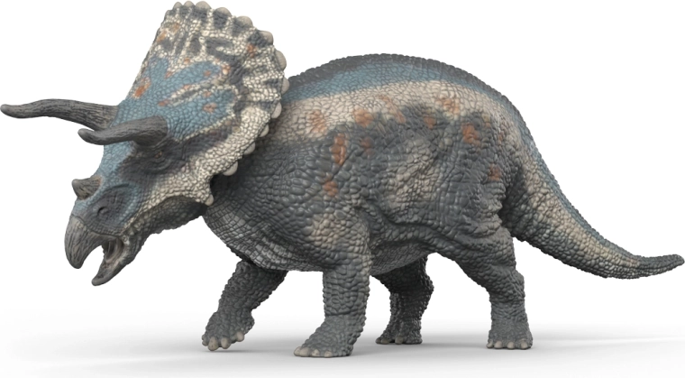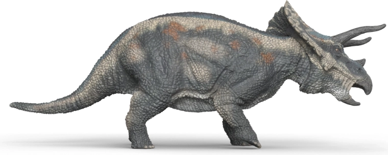 Szczegółowe rogi, duży kołnierz kostny i realistyczna tekstura skóry nadają triceratopsowi autentyczny wygląd w każdej zabawie i kolekcji.