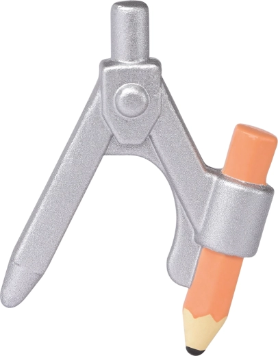 W zestawie model domu, plan oraz funkcjonalne rekwizyty, takie jak cyrkiel rysunkowy – idealne dla małych projektantów i budowniczych.