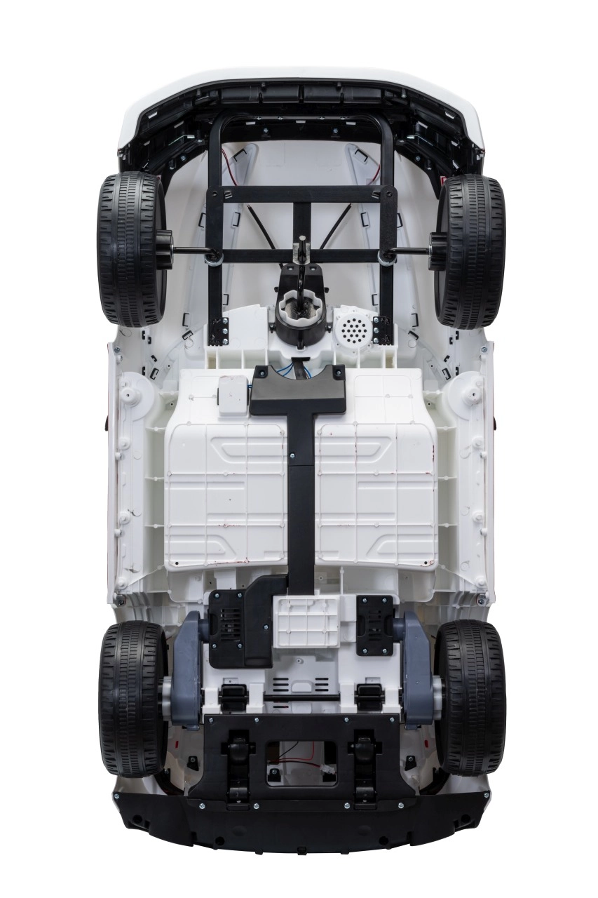 Duże koła EVA (21 × 9 cm) z amortyzacją z przodu i z tyłu tłumią nierówności i zwiększają komfort. O autentyczne wrażenia dbają otwierane drzwi, światła LED i dopracowane detale nadwozia. Panel audio z MP3, Bluetooth, USB i AUX urozmaica jazdę ulubioną muzyką, a wskaźnik naładowania pokazuje stan akumulatora.