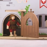 Zamek łatwo się składa poprzez wsuwanie drewnianych elementów jeden w drugi, więc zabawa może zacząć się w kilka chwil. Wykonany z wysokiej jakości, wytrzymałego drewna z naciskiem na bezpieczeństwo i długą żywotność. Zabawa zamkiem wspiera umiejętności komunikacyjne, motorykę małą oraz kreatywne opowiadanie.