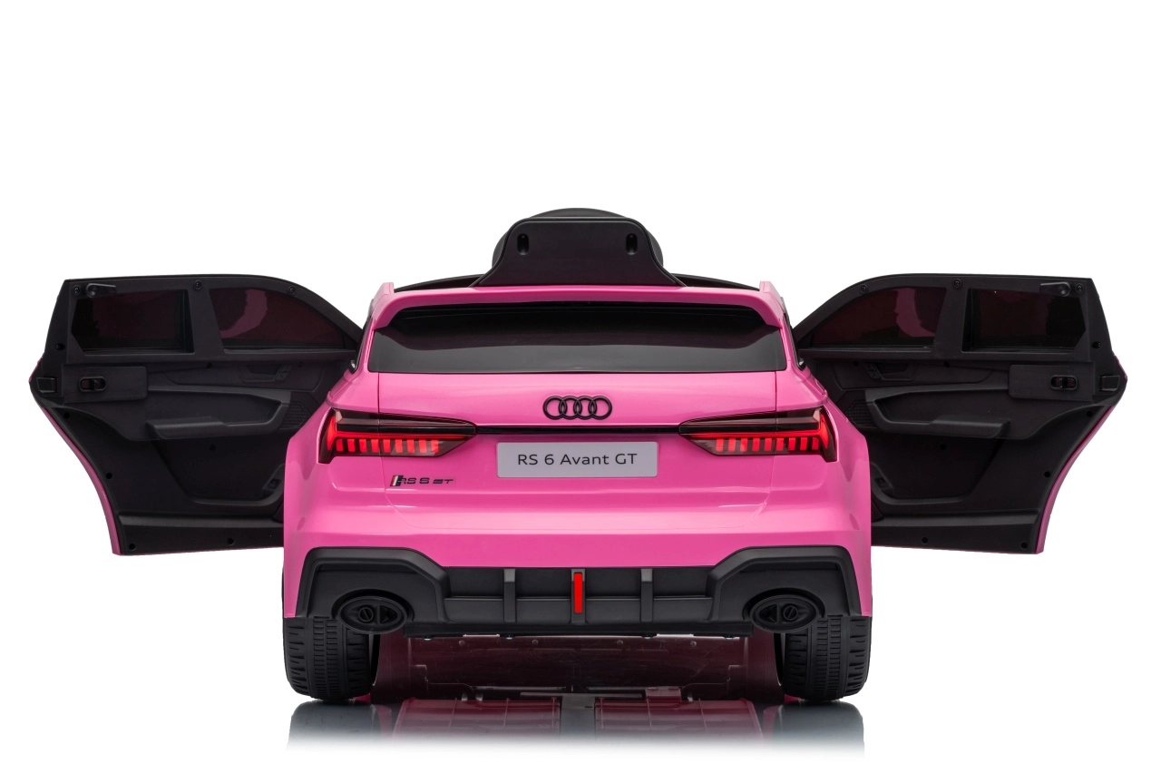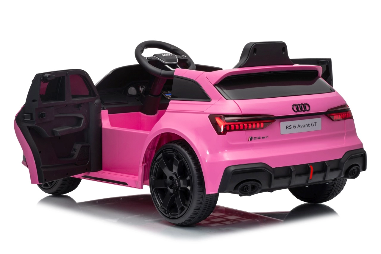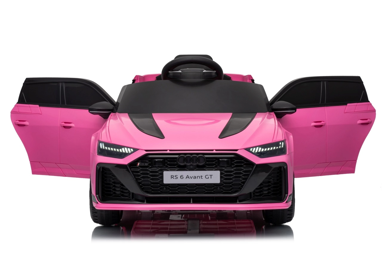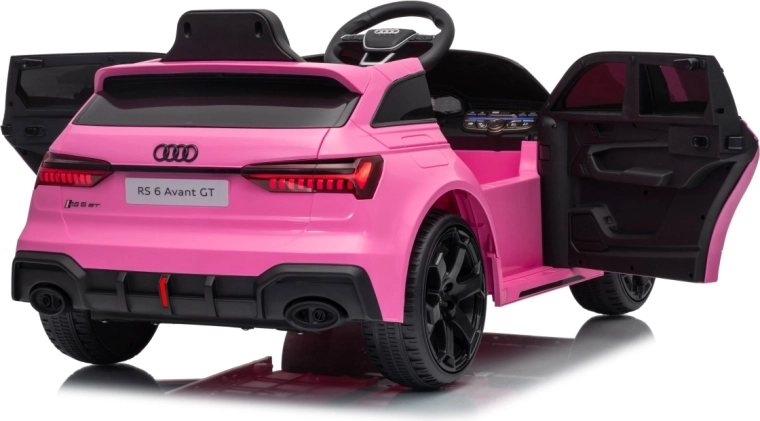 Stylowy elektryczny samochodzik AUDI RS 6 Avant GT w różowym kolorze ucieszy każdego małego kierowcę. Oferuje 4×35 W silniki dla płynnej jazdy, akumulator 12 V 9 Ah dla dłuższego zasięgu, miękkie koła EVA dla cichej i komfortowej pracy oraz otwierane drzwi dla realistycznych wrażeń. Oczywiście są też światła LED, panel audio z Bluetooth/MP3/USB oraz zdalne sterowanie 2,4 GHz z przyciskiem bezpieczeństwa Stop.